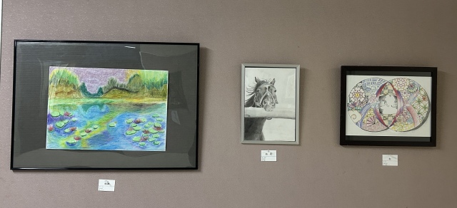 7月の校内展示です。今月から展示場所が2カ所に増えて、より多くの作品を見てもらえることになりました。