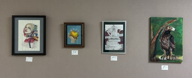 高校部員6名は絵画作品を出品しました。美術の授業中に制作した作品もあります。作品展は19日までです。