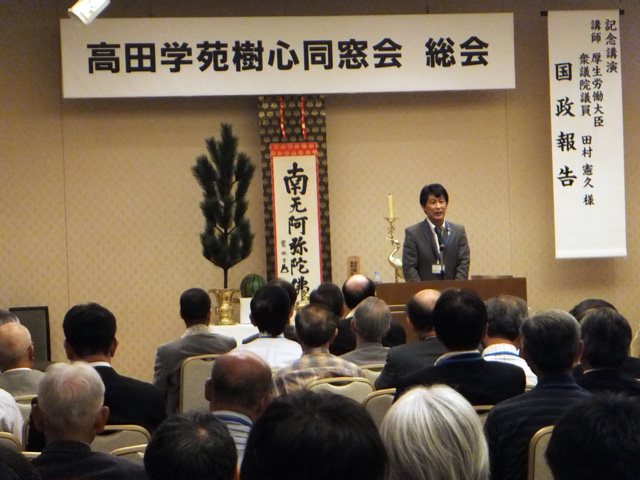 記念行事は、同窓の田村憲久厚生労働大臣の記念公演があり、楽しい内容の中に大臣ならではというお話を聞かせてくださり、大変有意義な時間となりました。